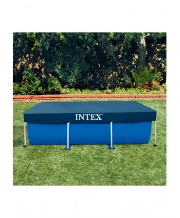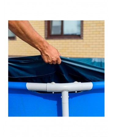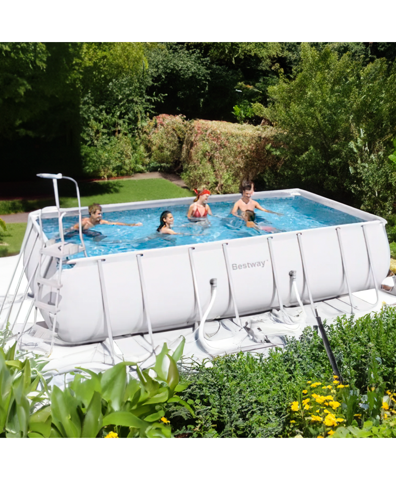 Magnífica piscina retangular fabricada em PVC e aço de grande qualidade, muito resistente e com uma capacidade de 15.897 L de água.